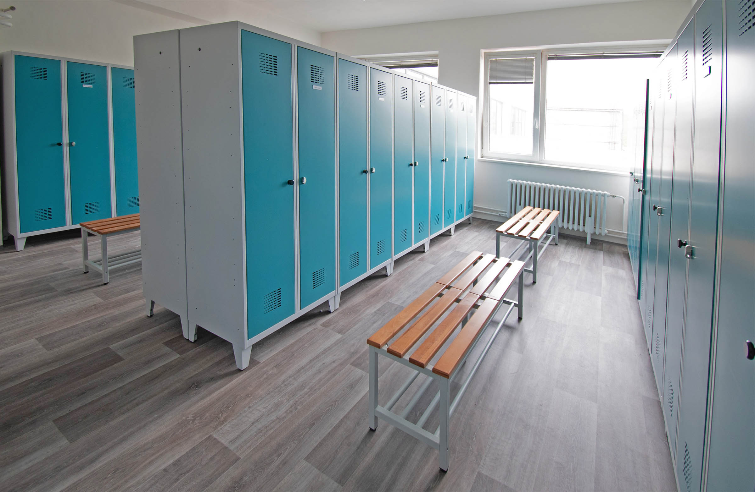 Šatna LappKabel, Otrokovice - šatní skříně s dveřmi "Z" A186E, lavice A51K