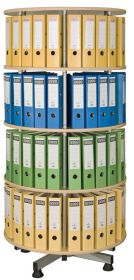 Archivační otočná skříň na šanony. Počet šanonů na patro = 24 ks, celková kapacita skříně 96 ks. Rozměry v x š x h = 1630 x 810 x 810 mm, sv. výška patra 350 mm. Police z lamina v dekoru buk s plastovou hranou, zvýšená hrana brání vypadnutí pořadačů při manipulaci se skříní. Otočný kříž a nosná konstrukce kovová. Výškově stavitelné plastové nožky. Max. zatížení jednoho patra 60 kg. Záruka na jakost 5 let.