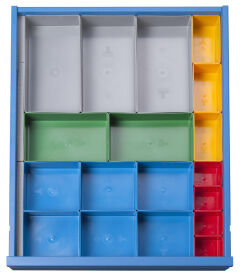 Sada krabiček k dokoupení pro organizaci obsahu v zásuvkách kontejnerů dílenských stolů. Vhodné pro horní zásuvku kontejnerů M4, M6, Z5 a Z7