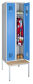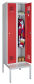 Svařované 2-dveřové šatní skříně na soklu, nožkách nebo na lavičce. 2 oddíly š=300 mm, otevírání dveří standardní nebo společné, uzamykání cylindrickým zámkem, otočným uzávěrem s možností doplnění rozvorovým mechanismem.