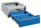 Tuhá a stabilní konstrukce, svařovaný horní rám stolu. Konstrukce z ocelových profilů 40 x 40 mm. Rozměry stolu v x š x h = 900 x 1200 x 700 mm, Pracovní plocha z bukové překližky tl. 20 mm, (horní plocha ošetřena lněnou fermeží), horní hrany jsou zaobleny (r = 3 mm). Police - šedé lamino, tl. 18 mm š x h = 1190 x 690 mm. Obvodové ABS hrany tl. 2 mm. Sv. výška mezi deskou a policí 530 mm. Kovové madlo pr. 22 mm. 1-zásuvkový kontejner. Kvalitní teleskopické výsuvy zásuvek 100% výsuv, nosnost zásuvky 40 kg, výška zásuvky 150 mm, zásuvka vybavena příčným kovovým děličem. Cylindrický zámek se 2 klíči. Povrchová úprava práškovým lakem, barva šedá/modrá RAL 7035/5015. Pojezdová kola (nešpinivá) - pr. 100 mm, 2 x otočná kola, 2 x otočná s brzdou. Nosnost stolu 300 kg. Záruka na jakost 5 let.