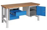 Tuhá a stabilní konstrukce, svařovaný horní rám stolu. Konstrukce z ocelových profilů 40 x 40 mm. Rozměry stolu v x š x h = 900 x 1500 x 800 mm, pracovní deska tl. 25 mm - šedé lamino, police šedé lamino tl. 18 mm, š x h = 1490 x 790 mm. Obvodové ABS hrany tl. 2 mm. Sv. výška mezi deskou a policí 590 mm. Kovové madlo pr. 22mm. Uzamykatelná zásuvka - teleskopický výsuv 100% na kuličkových ložiskách, nosnost zásuvky 50 kg. Vnější rozměry zásuvky v x š x h = 224 x 461 x 600 mm. Výbava - 1 ks dělící příčka, cylindrický zámek se 2 klíči. Povrchová úprava práškovým lakem, barva šedá/modrá RAL 7035/5015. Pojízdná kolečka (nešpinivá) - pr. 100 mm, 2 x otočná kolečka, 2 x otočná s brzdou. Nosnost stolu 300 kg. Záruka na jakost 5 let.