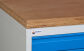 Tuhá a stabilní konstrukce, svařovaný horní rám stolu. Konstrukce z ocelových profilů 40 x 40 mm. Rozměry stolu v x š x h = 900 x 1500 x 800 mm. Pracovní plocha z bukové překližky tl. 30 mm, (horní plocha ošetřená lněnou fermeží), police šedé lamino tl. 18 mm, š x h = 1490 x 790 mm. Obvodové ABS hrany tl. 2 mm. Sv. výška mezi deskou a policí 590 mm. Kovové madlo pr. 22mm. Povrchová úprava kovové konstrukce práškovým lakem, barva šedá RAL 7035. Pojezdová kolečka (nešpinivá) - pr. 100 mm, 2 x otočná kolečka, 2 x otočná s brzdou. Nosnost stolu 300 kg. Záruka na jakost 5 let.
